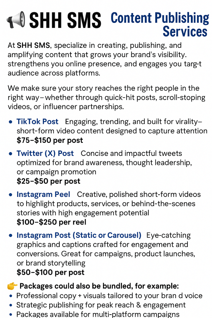 📢 SHH SMS – Content Publishing Services