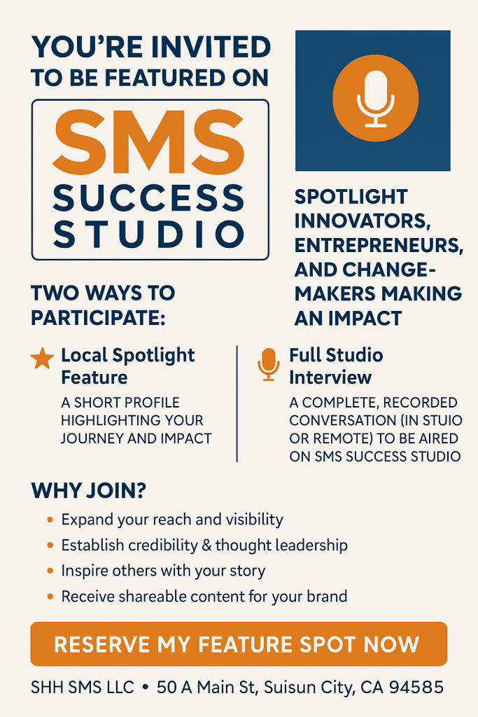 At SMS Success Studio (powered by SHH SMS LLC), we spotlight rising leaders, innovators, and changemakers. We’d love to invite you to be a featured guest on our platform. Register your interest on our talent form. You can choose from two formats depending on your preference: